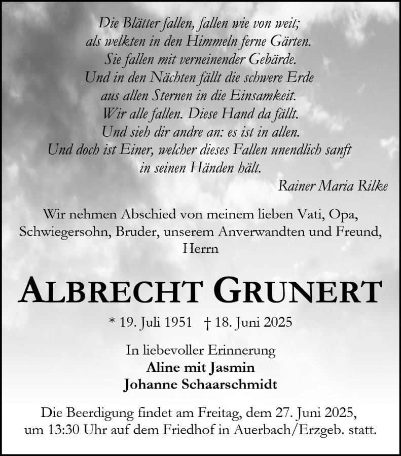 wir wünschen Ihnen für die kommende Zeit viel Kraft und dass es Ihnen gelingt, dankbar auf die positiven Erinnerungen zurückzublicken. Diese Gedenkseite möge Ihnen dabei helfen, Ihre Trauer zu teilen und das Andenken gemeinsam wachzuhalten.