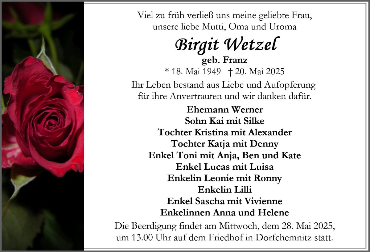 gestorben am 20. Mai 2025 in Zwönitz OT Günsdorf