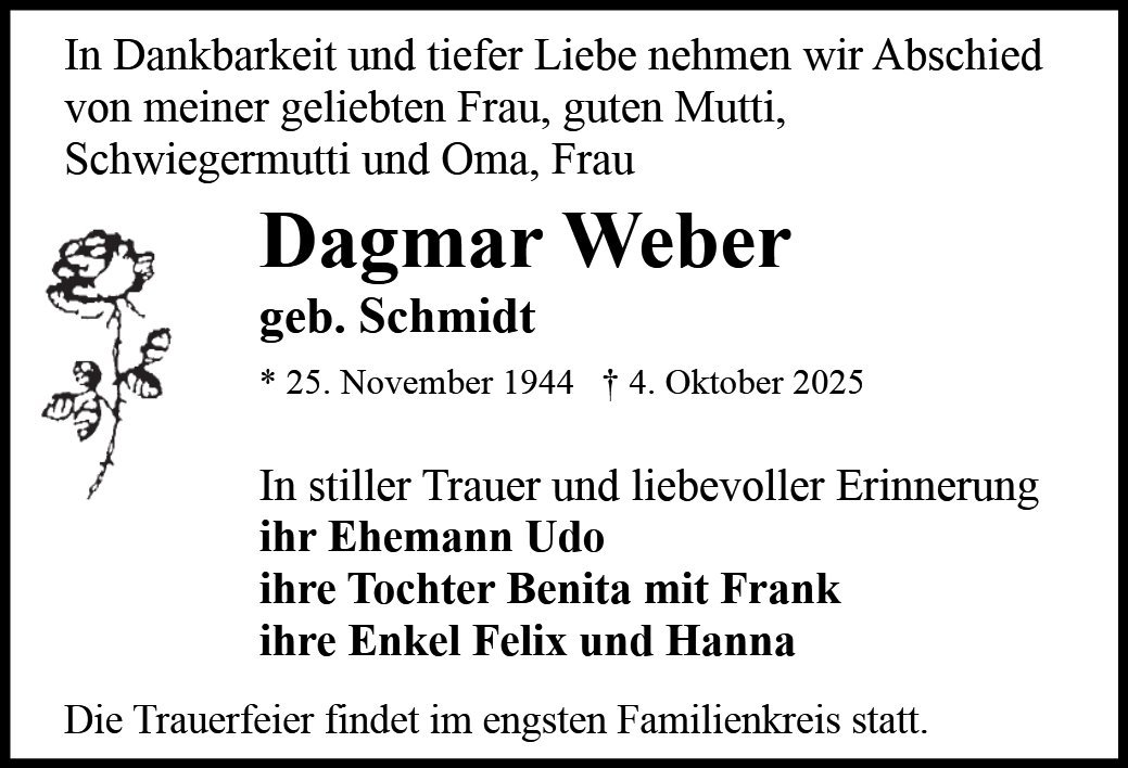 Dagmar Webergestorben am 4. Oktober 2025