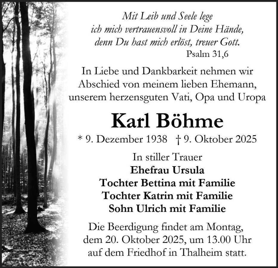 Karl Böhmegestorben am 9. Oktober 2025